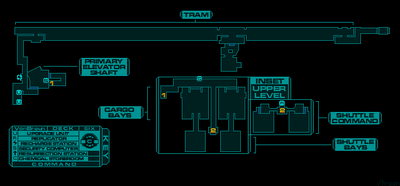 Soldier G65434-2 arrives on this Deck in the primary elevator from the Recreation. SHODAN tells him to head to the Bridge of the Von Braun to acquire the Ops Override Access Card. That item is needed to transfer SHODAN's intelligence to the UNN Rickenbacker from the Von Braun and to destroy the latter. Using the tram, soldier makes his way to the second part of the Deck and eventually reaches the ship's Bridge, where he picks up the Access Card. Along the way he witnesses the remaining survivors fleeing in the ship's escape pods. Next, he follows SHODAN's instructions by backtracking to the Operations and Engineering Decks. When he returns to the Command, the Many anticipate the plan to destroy the starship, loading two shuttles with their offspring. SHODAN instructs soldier to destroy the shuttles to prevent the escape. Once done with that task, the protagonist makes his way to the Umbilical to the UNN Rickenbacker. However, just before reaching reaching the Grav Shafts, he is stopped by an undestructible Psi Barrier created by Anatoly Korenchkin, who urges to confront him on the Bridge. Once he's defeated, the soldier is now free to head on over to the Rickenbacker.