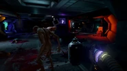 During the Reboot stage of development, freezing enemies was once an environmental hazard that could be used to attack enemies. By shooting Cryonic barrels it would let out a freezing spray that would freeze enemies solid, allowing them to be attacked and cause them to break up into pieces. It is unclear if it would have affected the player.