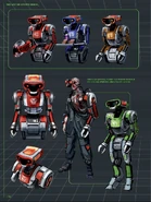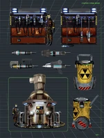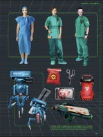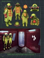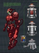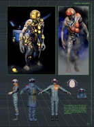 In Research, Hazmat suits were originally planned to be featured. It is unclear if this was meant to act in place of the Environmental Protection Pack or just a decoration.