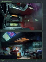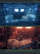 In early versions the lighting and certain colors were different. During the reboot stages of development, a different design for the reactor was considered before changing to the one settled on for the final game.