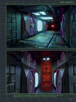 The lighting on this level had changed a few times, with certain areas having their colors tweaked. The level layout was once a bit different, with one of the hanger bays having a grav-lift puzzle.