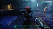 Around 2016, around the time of the Kickstarter, a different version of the game was being made in Unity, Before switching to Unreal. A demo was released for the Kickstarter in late June 2016. This version didn't have much completed, it only had 3 enemies (Serv-Bot, Humanoid Mutant, and Repair-Bot) and 2 weapons (Lead Pipe and Sparq Beam). A few other items and upgrades were present but not many.