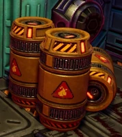 In the original System Shock destroying Waste Barrels (both Radioactive and Toxic) and Chemical Tanks found inside hazardous areas does not affect these zones nor the player (no splash damage or LBP difference). There are, however, three Chemical Tanks and one Radioactive Waste Barrel found nearby the Freight Elevator on Flight Deck. Destroying them will respectively contaminate/irradiate their immediate area (cube), permanently setting its LBP to 32.