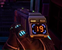 The semiautomatic minipistol is located on Level 1-Medical. It is a basic weapon, ideal for fighting low-tier enemies, given its low damage output and slow fire rate, although it can be significantly improved with weapon mods. It is the first ballistic-type weapon the player finds. The damaged variant is worth 3 credits or 15 scrap.