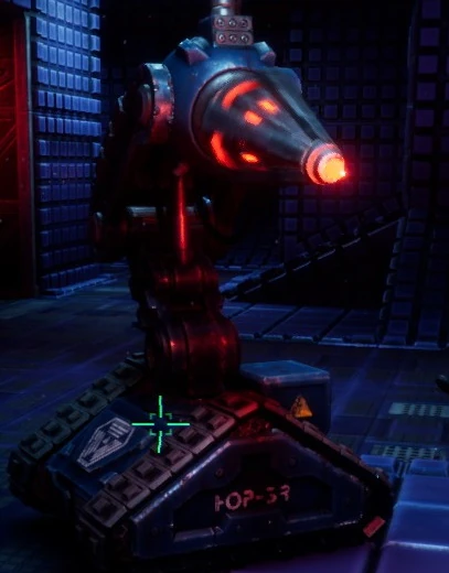 The Mobile Laser (sometimes called a Med Laser, HOP-3R, or Hopper (Not to be confused with the variant of the same name)) is an enemy encountered in System Shock (Remake) and is a variant of the Hopper. It is new to the remake and is not featured in the original game.